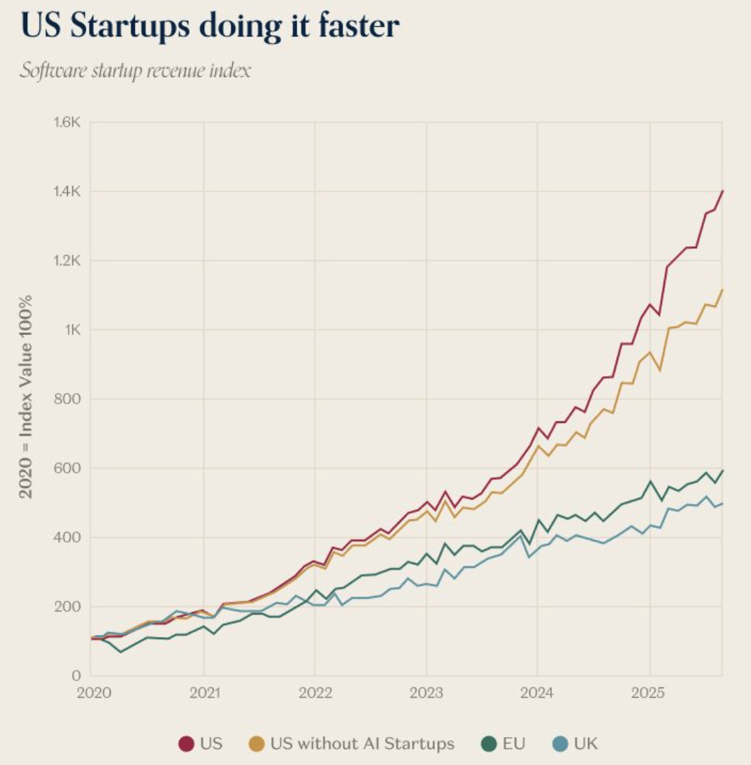 VC firm a16z presents Stripe data showing that US startups have been obtaining revenue much faster than European or UK peers. What are the reasons? Less regulation in the US, a larger market, more technological adoption?